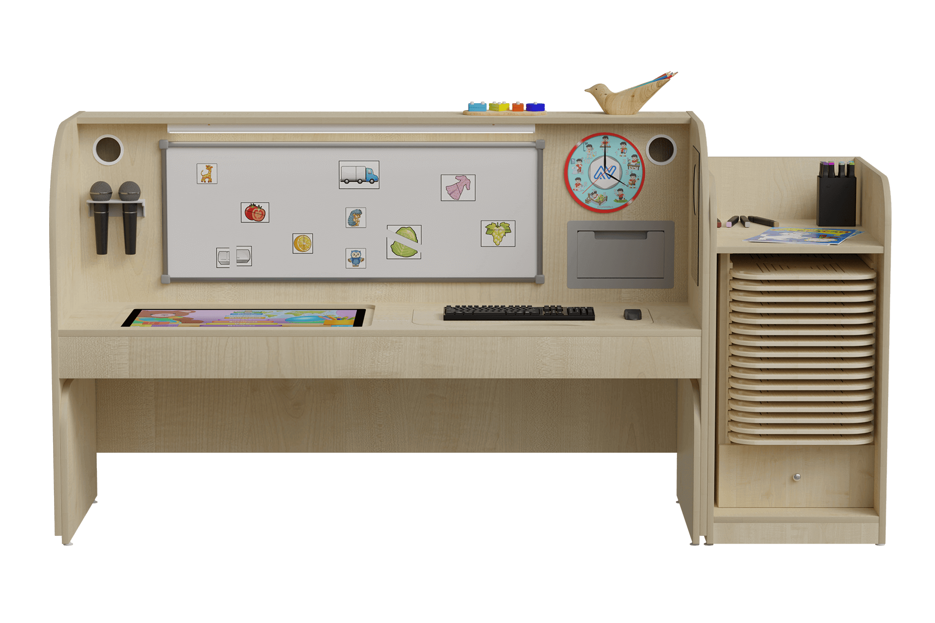 Оборудование оснащено встроенным отсеком для творчества, магнитно-маркерной доской, межполушарным лабиринтом (тренирует синхронное функционирование обоих полушарий мозга), логопедическим зеркалом, 2 микрофонами, сенсорным экраном с поддержкой до 10 одновременных касаний.