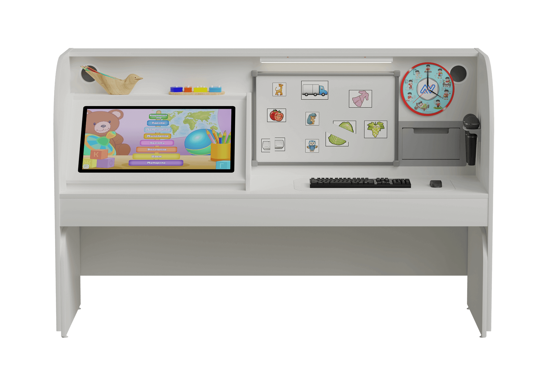 Профессиональный интерактивный стол для детей с РАС «AVKompleks Light-2», выпускаемый в комплекте с собственными программными продуктами «PROTECT KIDS», «ЛогоСтрана», «РАСкройся Миру», а также с интерактивными программными продуктами иных российских производителей программного обеспечения – это современный, эффективный инструмент для обучения в школе ребенка с РАС и реализации спектра реабилитационных методик через игру.